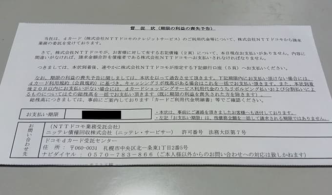 中には督促状(期限の利益の喪失予告)と書かれた、これまで見たこともない物々しい書類が…。