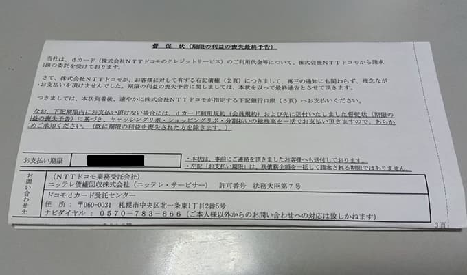 前に「期限の利益の喪失予告」ってのが来て、正直怖くて放置してた。